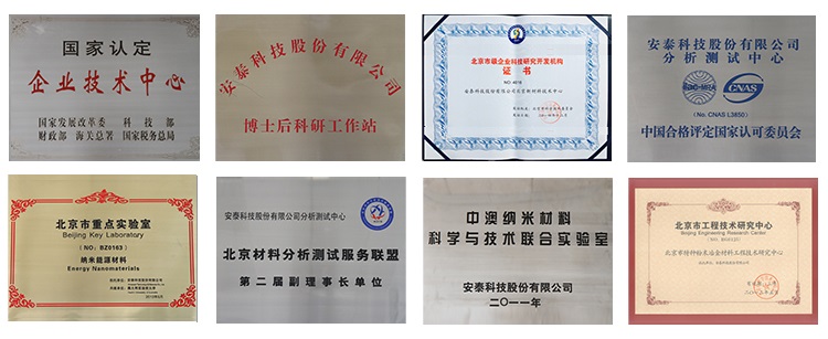 國家認定企業(yè)技術(shù)中心 企業(yè)博士后科研流動站 北京科技研究開發(fā)機構(gòu) 中關(guān)村先進功能材料技術(shù)支撐平臺 中國材料研究學(xué)會磁性材料及應(yīng)用專業(yè)委員會主任委員單位 中國鋼結(jié)構(gòu)協(xié)會粉末冶金分會硬面技術(shù)專業(yè)委員會主任委員單位 國家實驗室認可(CNAS)資質(zhì)